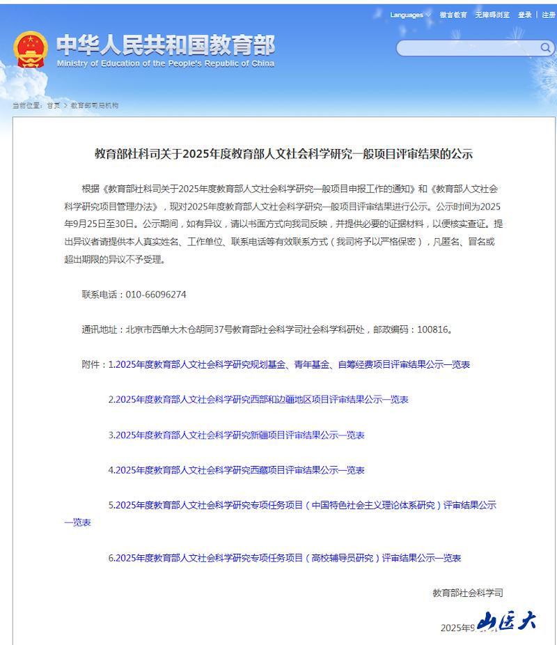 9月25日,2025年度教育部人文社會科學研究一般項目評審結果公示,我校專職思想政治輔導員郜雅主持的《心理契約視角下研究生導學思政協同育人機制構建研究》獲批2025年度教育部人文社會科學研究專項任務項目(高校輔導員研究)。