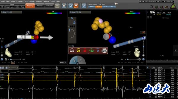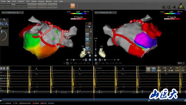 “射頻消融術?就是那種有輻射的手術嗎?”家屬聞此顧慮重重,怕射線給老人的身體帶來更大傷害。王睿主任醫師解釋說,在傳統射頻消融術中,X射線是實現手術可視化的必要條件,如果不借助X射線進行操作,之前射頻消融術是無法實施的。隨著醫學技術的發展,目前采用CARTO(三維電解剖標測系統)開展零X射線下射頻消融術,就像給醫生安了一雙“慧眼”,無須在X射線透視下,即可實現精準導航。這種新技術,在手術過程中放置標測電極和操作消融大頭電極等均采用三維電生理標測系統指導,完全不用X射線透視,卻對手術醫生技術的熟練程度、導管的操作技術以及心臟解剖三維理解要求極高。通過該技術既能獲得準確靶點,縮短手術時間,提升手術安全性,讓患者避免了X線輻射,也讓醫生避免了披“甲”上陣、負重手術,因此被稱為綠色電生理射頻消融術。