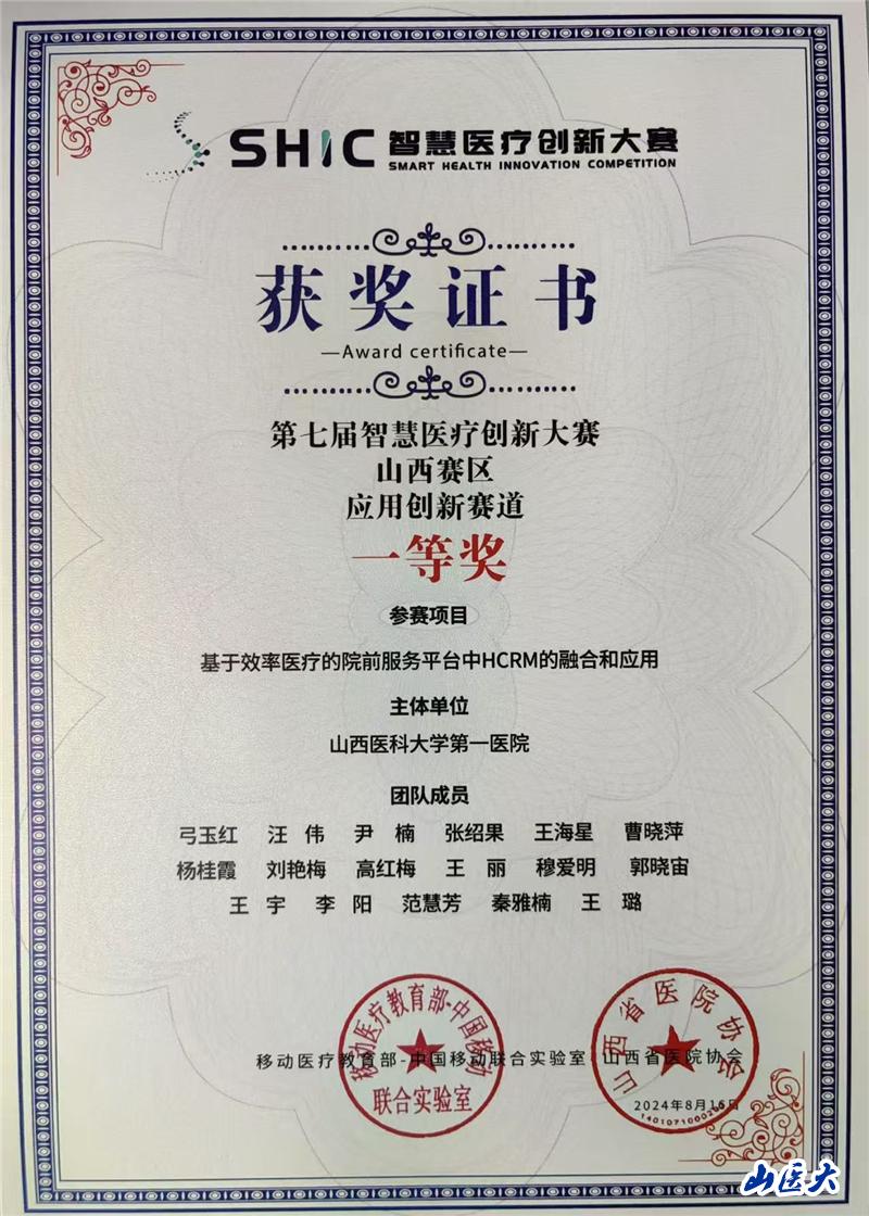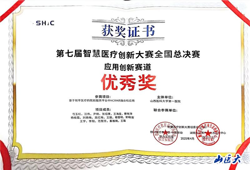 4月23日至25日,我校第一醫院項目《基于效率醫療的院前服務平臺中HCRM的融合和應用》作為山西賽區一等獎參加了在長沙舉辦的第七屆智慧醫療創新大賽全國總決賽,該案例基于《醫院患者信息推送服務規范》《醫院患者信息推送服務基本數據集》和《醫療運送服務信息化基本功能規范》標準制定,結合科技溫度與人文關懷并重的創新實踐,贏得評委與行業同仁的贊譽,提供了可借鑒的“山西標準”,榮獲優秀獎。