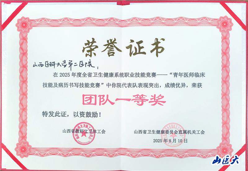 8月10日,2025年度全省衛生健康系統職業技能競賽——“青年醫師臨床技能及病歷書寫大賽”圓滿落幕。來自全省各地市及省直各大醫院的29家單位、116名優秀青年醫師齊聚一堂,展開了一場代表我省青年醫師最高水平的巔峰對決。經過層層激烈角逐,由我校第二醫院呼吸與危重癥醫學科董艷婷、婦產科張利利、普通外科宋浪、消化內科聶愛英4名青年醫師組成的代表隊勇奪大賽團體總冠軍。董艷婷榮獲“青年醫師臨床技能競賽”內科組一等獎。