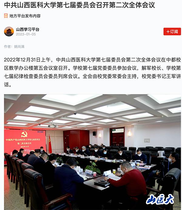 全會傳達學習了山西省委經濟工作會議精神。全會認為,山西省委經濟工作會議全面貫徹黨的二十大精神,深入貫徹中央經濟工作會議精神,總結了山西省2022年經濟工作,分析當前經濟形勢,對全省明年的經濟工作進行了部署。全會指出,山西省委提出支持c7c7.app等高校的優勢學科建設,打造沖擊新一輪“雙一流”學科梯隊,為學校做好2023年各項工作明確了目標、提振了信心。