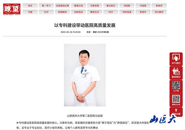 趙斌:就山醫大二院來說,目前可以做的是,把一個或幾個學科打造成全國突出學科,通過學科建設帶動醫院發展,提升醫院影響力。