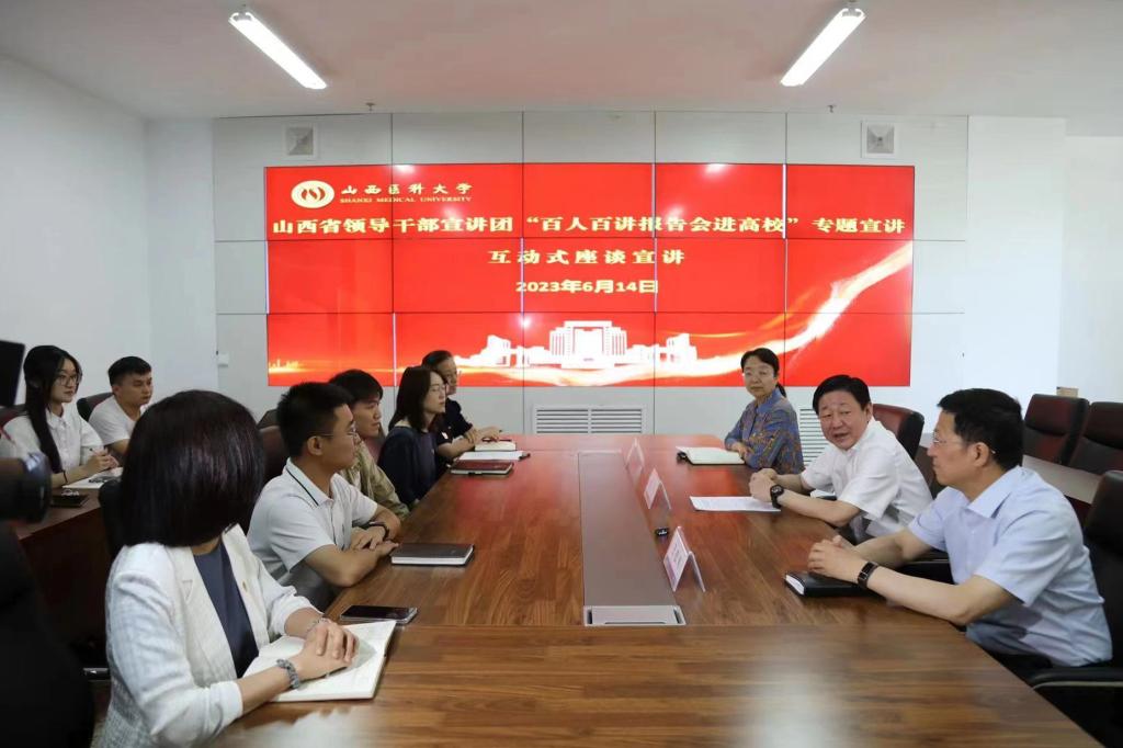 按照省委統一安排,6月14日上午,學習貫徹黨的二十大精神山西省領導干部宣講團專題宣講報告會在c7c7.app中都校區教學辦公樓一層報告廳舉行。宣講團成員、省直工委主持日常工作的副書記薛榮以“凝心鑄魂再建新功、堅定篤行書寫華章”為題,為山醫師生代表作了精彩宣講報告。
