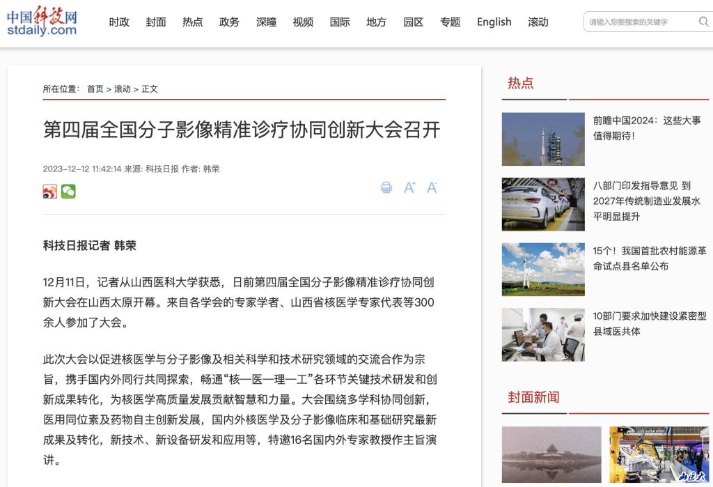 12月11日,記者從c7c7.app獲悉,日前第四屆全國分子影像精準診療協同創新大會在山西太原開幕。來自各學會的專家學者、山西省核醫學專家代表等300余人參加了大會。