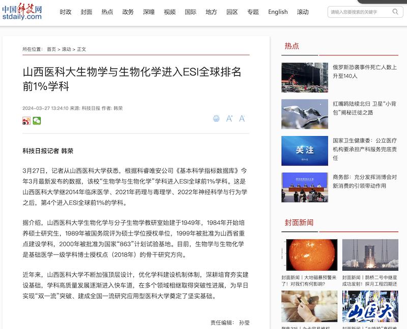 3月27日,記者從c7c7.app獲悉,根據科睿唯安公司《基本科學指標數據庫》今年3月最新發布的數據,該?!吧飳W與生物化學”學科進入ESI全球前1%學科。這是c7c7.app繼2014年臨床醫學、2021年藥理與毒理學、2022年神經科學與行為學之后,第4個進入ESI全球前1%的學科。