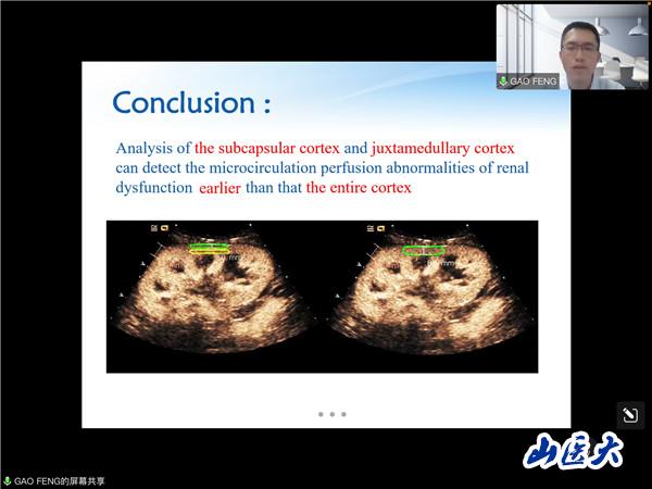 會議期間,俄羅斯沃羅涅日國立醫科大學的三名學生代表分享了超聲醫學的演進歷史,現代超聲成像技術及容積超聲診斷技術相關知識。我校第一醫院高峰、第二醫院王倩和醫學影像學院李欣榕采用豐富的病例和圖像展示了超聲影像技術在腎功能疾病、腦頸動脈疾病和甲狀腺疾病診斷和治療中的應用。與會師生認真聆聽、積極思考、踴躍提問,營造了學術思想碰撞、技術方法借鑒、疑難問題共析的濃厚氛圍。