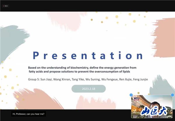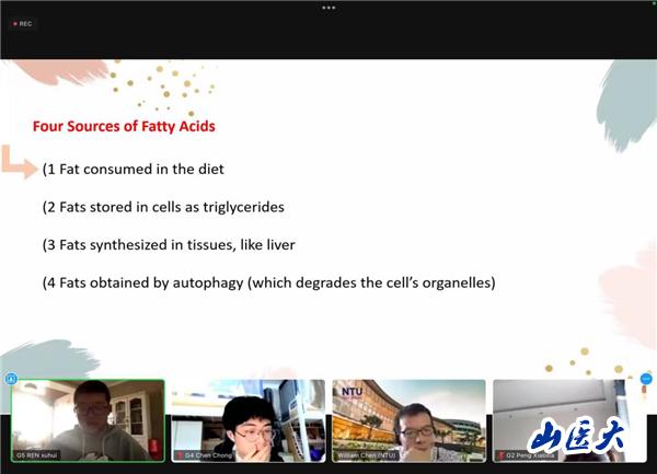 小組結(jié)業(yè)匯報中,任胥暉同學(xué)分享了關(guān)于“脂肪酸代謝途經(jīng)與如何抑制脂肪酸過度累積”的學(xué)習(xí)收獲,獲得了小組評價中的最高分。馮君杰同學(xué)以“基于對生物化學(xué)的理解,定義脂肪酸產(chǎn)生的能量”為課題方向,參與小組匯報并得到教授好評。