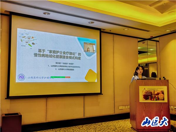 報告中,基于韓世范院長的“護士處方權”和“食療護理”兩個代表作領域,兩位代表分別交流了“院校協同下我國內地未來APN進階式處方培訓課程方案的初步構建”“基于‘家庭護士食療理論’的慢性病地域化健康膳食模式構建”“基于‘正三棱錐食療理論’的老年多重慢病非營養素干預策略的研究”“富含皂苷、黃酮和生物堿三類有效成分的物質對自身免疫性疾病細胞因子的調節作用:一項基于動物實驗的系統評價和Meta分析”“藥食同源物質對非酒精性脂肪肝患者血脂、血糖及肝功能影響的系統評價和Meta分析”五項研究成果,系列成果內容獲得線上、線下專家和同行們的一致好評,尤其是課題組創新性構建的“三棱錐家庭護士理論模型”,引來全場聚焦,得到與會者的廣泛關注。