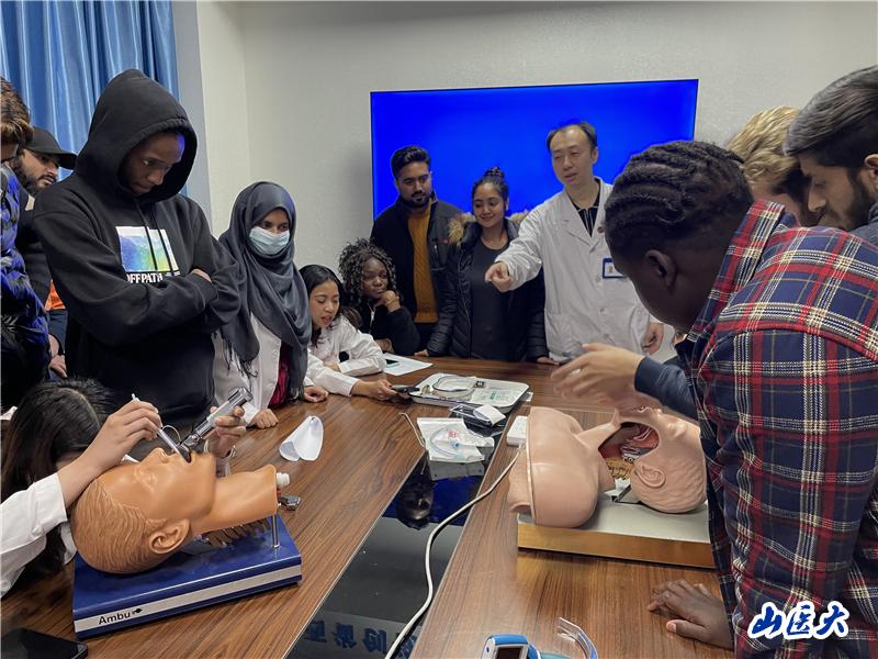 為確保留學生見習教學順利進行,急診醫學中心制定了周密的教學計劃,講授《急診與災難醫學》理論知識,同時選派甘紅英主任醫師、張霄副主任醫師為臨床實踐指導教師,全程采用雙語教學模式,使留學生在學習醫學知識的同時,增進了臨床實踐能力。五天的學習中,留學生進行了入科教育、床旁氣管插管教學、氣管切開手術觀摩、討論答疑等,國際留學生的醫學理論知識與臨床實踐技能都得到提升。