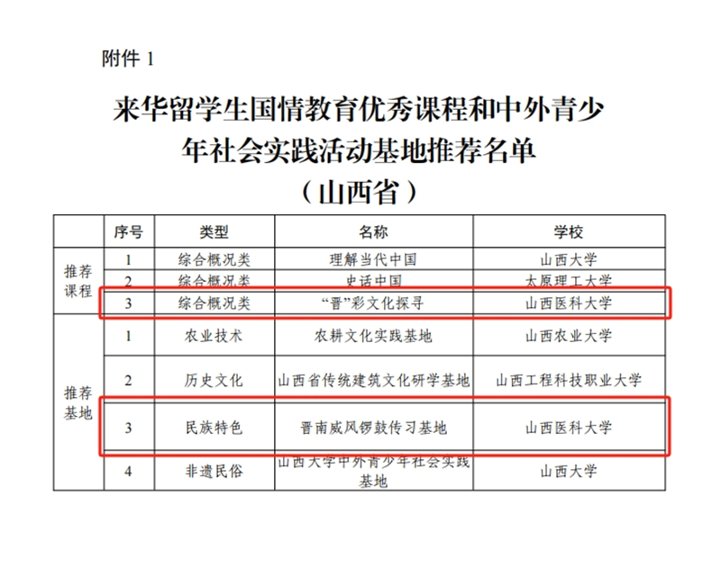 為深入貫徹習近平總書記關于教育的重要論述精神,加快落實中央教育工作領導小組秘書組印發的《加強來華留學管理工作方案》,受教育部國際合作與交流司委托,中國教育國際交流協會面向全國高?2024年度來華留學生中國國情教育優秀課程和中外青少年社會實踐活動基地征集工作,最終共確立111門課程和115個基地。我校申報的“‘晉’彩文化探尋”國情教育優秀課程和“晉南威風鑼鼓傳習基地”社會實踐活動基地雙雙獲批立項。