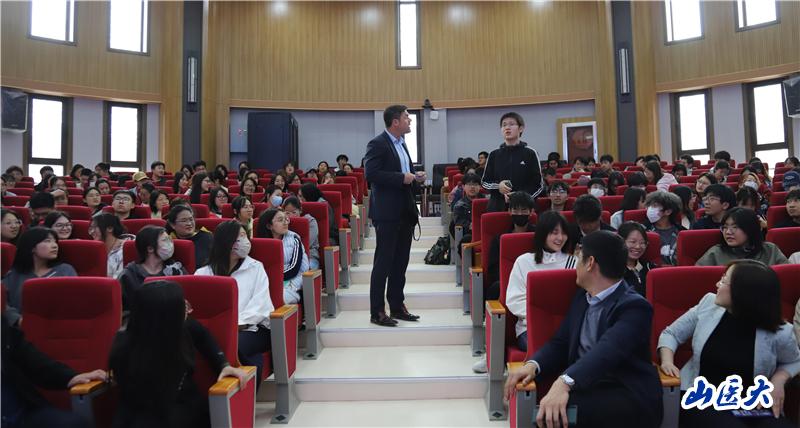 在隨后的互動環節中,同學們積極踴躍提問,圍繞 “英語口語能力提升”“職場能力塑造”“文化適應與融入” 等諸多方面展開深入交流。Adam先生及團隊成員一一耐心解答,給予了細致且專業的建議。