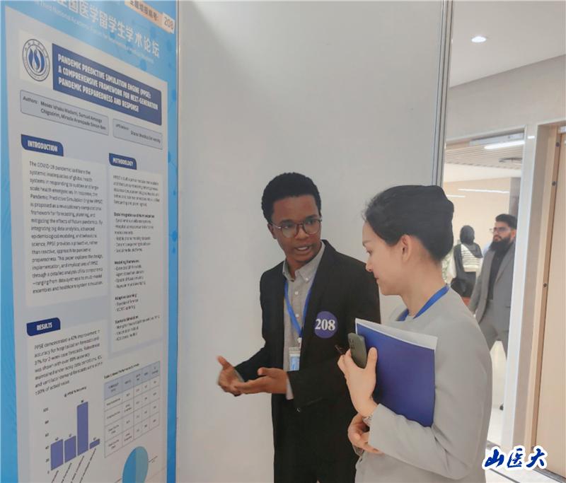 在主題墻板展示環節,MOSES ISHAKU MADAMI提出了“大流行預測模擬引擎”,該引擎融合多源實時大數據、先進流行病學建模與行為科學,實現更早的疫情預警(“哨兵式預警”)和概率性自適應預測,其設計理念與應用潛力給與會專家學者留下了深刻印象。