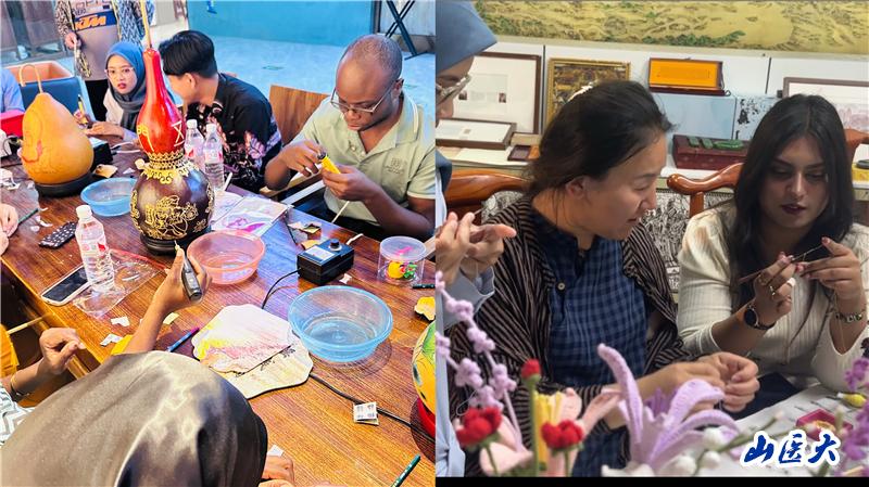 在實踐環節中,留學生們自己動手制作漆扇、彩繪迷你葫蘆,通過動手體驗感受傳統工藝的溫度與藝術的張力。非遺技藝的精巧、文化背后的深意,令在場同學贊嘆不已。“第一次知道漆扇不僅是一件工藝品,還承載著中國古代女性的審美與情感文化。”來自喀麥隆的衛樂黎說。通過“動手+動心”的沉浸式參與,非遺文化從展柜里“活”了起來,從符號變為情感連接,真正實現了文化的“潤物無聲”。