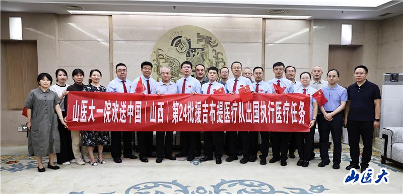 8月26日,我校第一醫院中國(山西)第24批援吉布提醫療隊的8名隊員肩負著祖國重托和醫者使命,于太原武宿國際機場集結啟程,遠赴非洲吉布提執行為期一年的援外醫療任務。副院長姜增譽率人力資源部、醫務部等職能部門負責人及派出科室主任專程前往機。釉泵撬托。