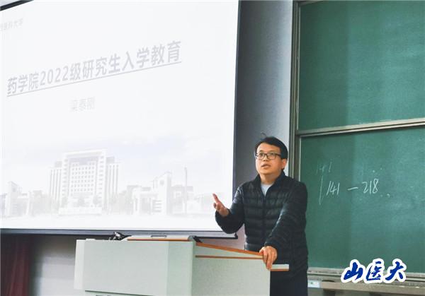 梁泰剛為研究生們?cè)敿?xì)介紹了學(xué)校、學(xué)院及學(xué)科的基本情況,講解了研究生培養(yǎng)的基本流程。分別向在學(xué)校實(shí)驗(yàn)室進(jìn)行科研工作的同學(xué)、在藥廠實(shí)習(xí)的產(chǎn)業(yè)學(xué)院的同學(xué)及在醫(yī)院實(shí)習(xí)的醫(yī)學(xué)科學(xué)院的同學(xué)就研究、實(shí)習(xí)工作的不同做了介紹。對(duì)同學(xué)們的選題開題、中期考核及畢業(yè)論文的完成作出了規(guī)劃和殷切期望,同時(shí)強(qiáng)調(diào)了學(xué)術(shù)誠(chéng)信需貫穿始終,絕對(duì)不能逾越。