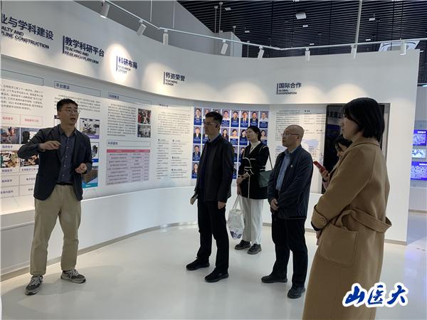 在天津大學醫(yī)學部,徐瑞副院長帶領(lǐng)參觀天津大學“興醫(yī)之路”主題教育館,辦公室主任趙晶晶詳細講解了智能醫(yī)學工程專業(yè)在學科建設(shè)、教學科研平臺、科研布局、師資榮譽、國際合作等方面取得的優(yōu)異成果。隨后,進一步參觀了該專業(yè)的實驗室。
