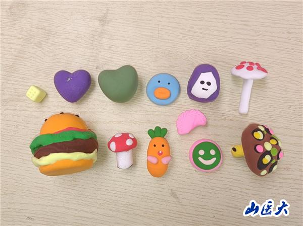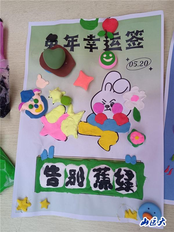 所有游戲中最引人駐足的莫過于“‘粘’走不開心”,同學們來到棚子中,用粘土塑造圖案,共同完成了一些作品,希望這些作品能夠為同學們帶去戰勝焦慮的信心與力量。