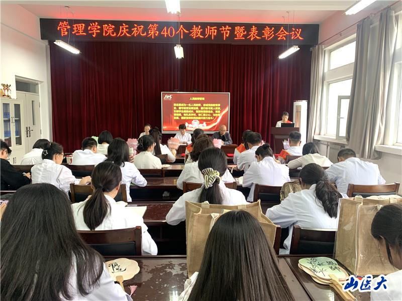 9月10日,管理學(xué)院舉辦慶祝第40個(gè)教師節(jié)暨表彰會(huì)。學(xué)院黨委書記李紅梅主持會(huì)議并講話,學(xué)院黨委副書記喬曉梅領(lǐng)學(xué)領(lǐng)誓教育家精神和《人民教師誓詞》,副院長(zhǎng)李建濤宣讀表彰決定,學(xué)院全體教師和學(xué)生代表參加了會(huì)議。