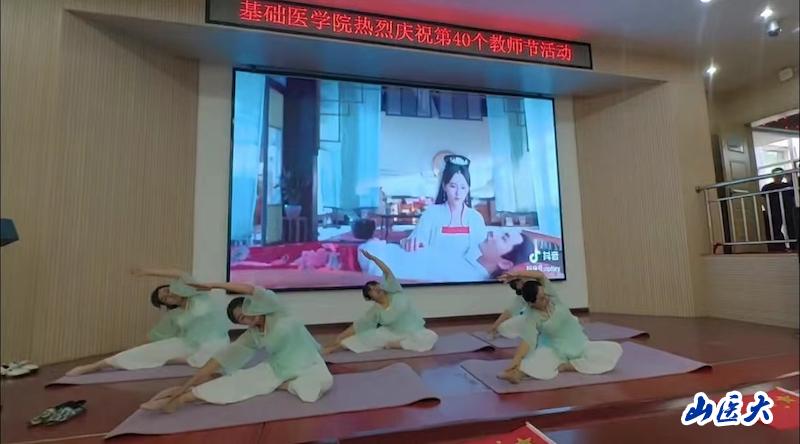 “飲其流者懷其源,學其成時念吾師。”《每當走過老師的窗前》序曲悠揚,生物制藥和基礎醫學專業學生向老師們真誠獻唱,為老師們獻上了節日的鮮花和祝福;各教研室、實驗室、科研團隊選送的23個節目逐一展示,合唱、獨唱、舞蹈、瑜伽、詩歌朗誦等形式多樣,大家熱情參與,紛紛登臺,表演精彩紛呈,活動在《明天會更好》的歌聲中落下帷幕,全院教師在歡欣輕松的氛圍中度過了一個溫馨感動的教師節。