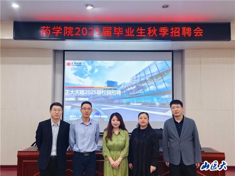 9月23日下午,藥學院在中都校區明德A一層報告廳舉辦正大天晴藥業集團股份有限公司招聘宣講會。正大天晴藥業集團人力資源中心侍海港經理一行三人、藥學院黨委副書記童玲、畢業班輔導員姜敏和2025屆畢業生160余人參加了本次宣講會。