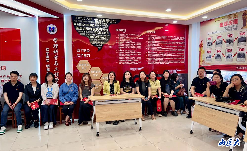 為深入學習全國黨建工作標桿院系的先進經驗,提升基層黨組織建設質量,7月3日上午,我?誶灰窖г海誶灰皆海┑澄咸逵萄Р浚ㄔ碩蹈聰擔┑匙苤Ц叭辰üぷ鞅旮嗽合、山西財經大學管理科學與工程學院黨委開展聯組共學活動。活動由口腔醫學院(口腔醫院)黨委書記任秀云與體育教學部(運動康復系)黨總支書記殷鳳帶隊,山西財經大學管理科學與工程學院黨委副書記陳霞全程陪同講解,兩院系黨支部委員等共同參加活動。