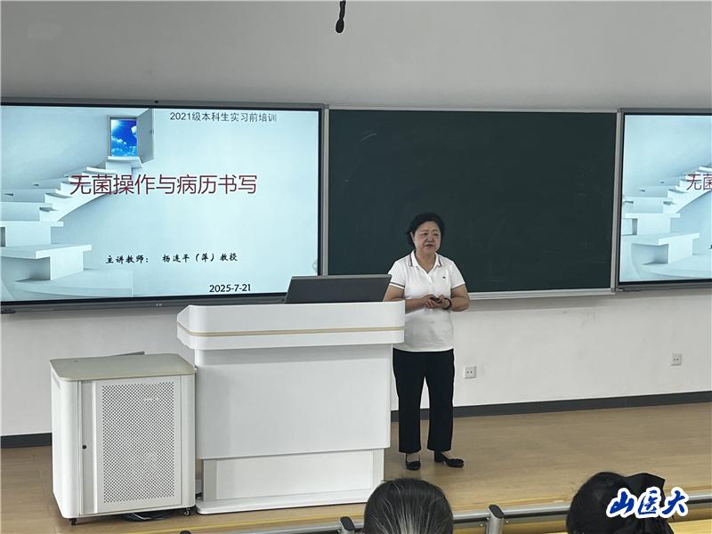 口腔醫學院副院長張芳作實習動員,她強調臨床實習是醫學教育的關鍵環節,要求學生嚴守紀律、主動學習。口腔醫學院副院長葛學軍圍繞“依法執業和糾紛處理”,聚焦真實案例,解讀法律條款,強化警示效果。第二臨床醫學院楊連平教授圍繞“無菌操作和病歷書寫”,強調筑牢臨床工作的生命線,無菌操作是技術問題,病歷書寫是法律問題,二者共同構成醫療質量的雙保險。醫務科閆云老師針對醫療質量安全展開系統講解,通過案例分析強化學生責任意識與規范操作能力。護理部郭娟老師圍繞手衛生規范、醫療廢物分類處置及職業暴露應急流程展開院感防護培訓,強調“人人都是感控實踐者”。課程聚焦于臨床基礎能力與職業規范,精彩紛呈、環環相扣,既有理論高度又具實踐指導性,為同學們即將開始的臨床實習筑牢專業基礎。