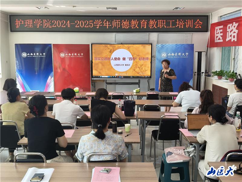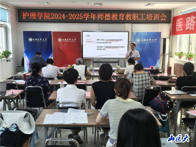 8月13日,我校護理學(xué)院在迎澤校區(qū)召開2024-2025學(xué)年師德教育教職工全員培訓(xùn)會。會議通過專題教育、制度解讀、案例警示等形式,系統(tǒng)完成了師德專題教育與師德警示教育培訓(xùn)。護理學(xué)院黨委書記董海濤主持會議,全院教職工參加學(xué)習(xí)。