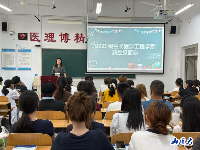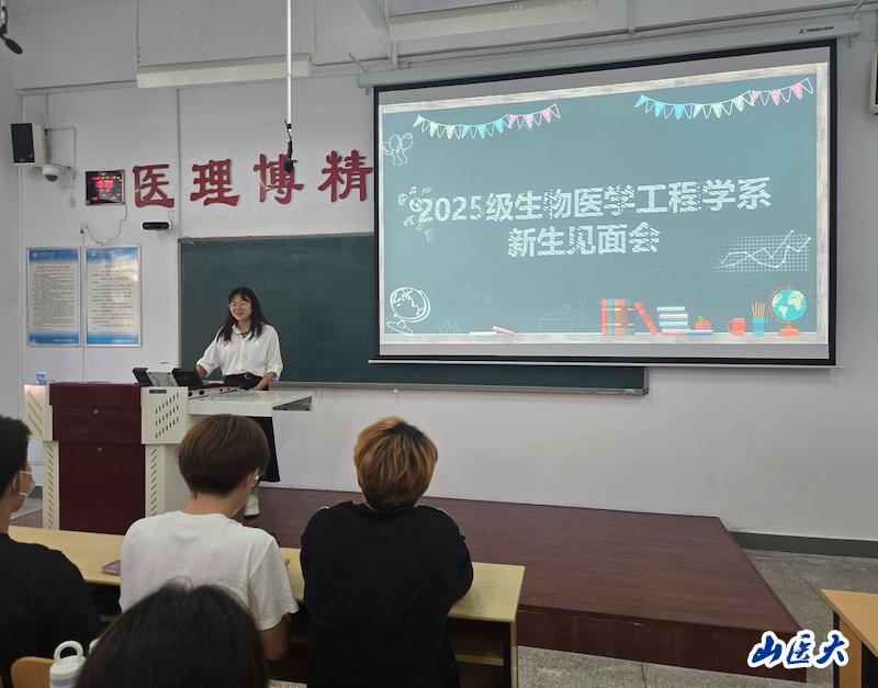 黨總支書記秦娜首先代表學(xué)系全體教師對新同學(xué)的到來表示最熱烈的歡迎。她深入闡釋了生物醫(yī)學(xué)工程這一交叉學(xué)科的獨(dú)特魅力與重大戰(zhàn)略意義。秦娜講到,“生物醫(yī)學(xué)工程是工程學(xué)、生物學(xué)和醫(yī)學(xué)的深度交融,是運(yùn)用工程手段解決生命健康領(lǐng)域關(guān)鍵問題的前沿陣地。從高端醫(yī)學(xué)影像設(shè)備、可穿戴健康監(jiān)護(hù)系統(tǒng)到納米靶向藥物載體、組織工程與人工器官,再到智慧醫(yī)療與AI輔助診斷,你們的舞臺(tái)廣闊無垠,你們的使命光榮艱巨。”她向新生們提出了三點(diǎn)期望:一是要志存高遠(yuǎn),心懷家國,做有理想的新時(shí)代青年。將個(gè)人發(fā)展的小目標(biāo)融入國家發(fā)展的大藍(lán)圖,系好人生的“第一?圩印。二是要勤學(xué)深思,勇于創(chuàng)新,做有本領(lǐng)的實(shí)干家。大學(xué)是知識的殿堂,更是能力鍛造的熔爐。在實(shí)驗(yàn)實(shí)訓(xùn)和科研創(chuàng)新中錘煉過硬本領(lǐng),努力成為所在領(lǐng)域的拔尖創(chuàng)新人才。三是要修身立德,健全人格,做有擔(dān)當(dāng)?shù)膴^斗者。新生們在大學(xué)里不僅收獲知識,更要學(xué)會(huì)與人相處、與社會(huì)接壤,培養(yǎng)堅(jiān)韌不拔的意志、樂觀向上的心態(tài)和包容合作的團(tuán)隊(duì)精神。