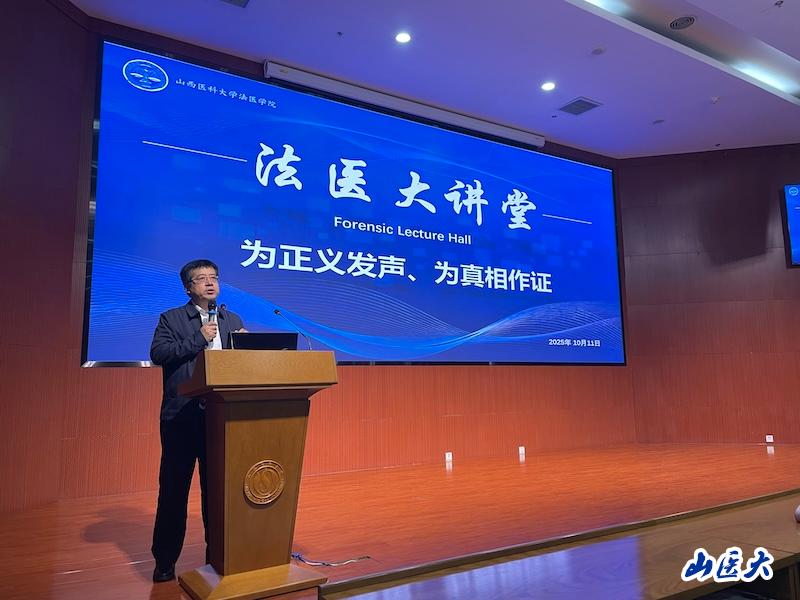 朱波峰在致辭中對“法醫大講堂”的舉辦表示熱烈:,強調本次活動不僅是傳遞專業知識的橋梁,更是連接課堂理論與行業實踐的重要紐帶。同時,希望低年級的同學們不要局限于課本知識,要主動邁出探索的腳步,盡早接觸與法醫學科相關的科研項目、案例研討與實踐活動。