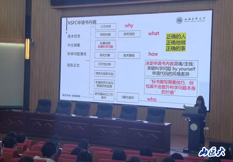 10月9日下午,由我校公共衛生學院重大疾病風險評估山西省重點實驗室主辦的“國家自然科學基金項目申請經驗分享”科研講座在中都校區至公樓一層學術報告廳舉行。講座由衛生統計教研室主任余紅梅教授主持。