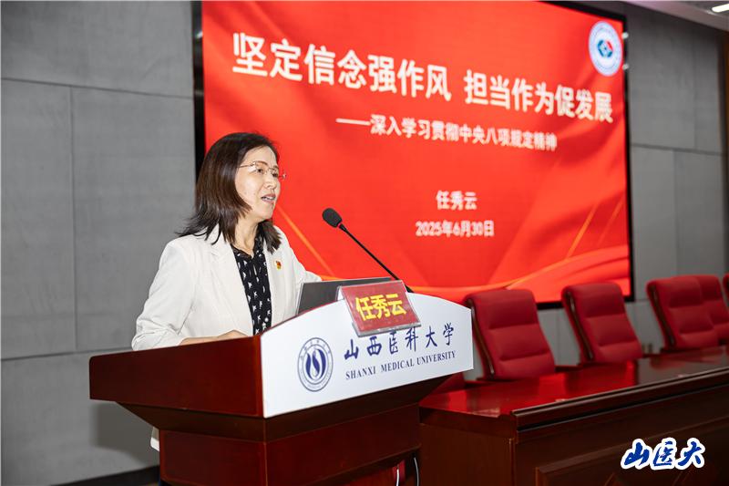 任秀云圍繞“開展深入貫徹中央八項規定精神學習教育的重要意義”“醫療領域易發問題和風險點警示”“以優良作風推動醫院事業高質量發展”三個方面進行了系統講述。她表示,作風建設是一場攻堅戰、持久戰。在全面從嚴治黨新起點上,通過開展深入貫徹中央八項規定精神學習教育,進一步密切黨群干群關系、鞏固黨的執政基。涼刂匾。開展深入貫徹中央八項規定精神學習教育的成效主要體現在為人民群眾辦實事、解難題上。要通過學習教育,從思想根源上糾治脫離群眾的不良風氣,重塑黨員干部艱苦奮斗的作風。她激勵大家錨定口腔醫學院2025年8大重點工作,迎難而上、攻堅克難,以“釘釘子”精神將學習成效轉化為推動口腔醫學院各項工作高質量發展的強大動力。