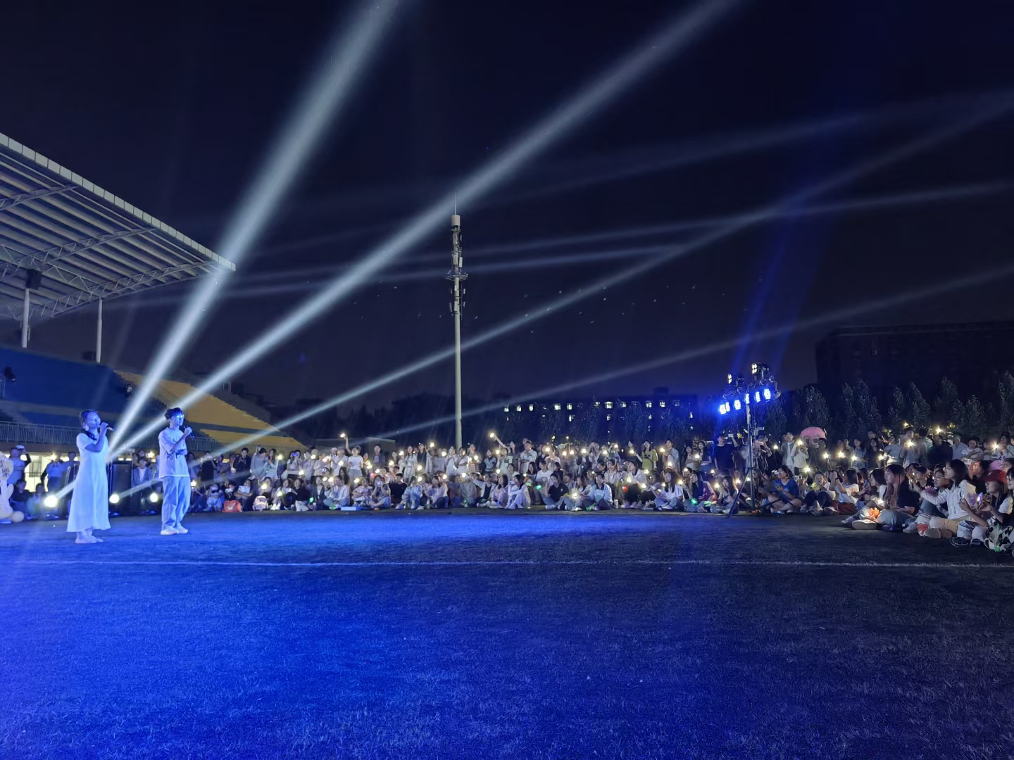 在特別設(shè)置的“青春不散場”畢業(yè)生告別環(huán)節(jié)中,即將離校的學(xué)子們用歌聲譜寫著屬于他們的畢業(yè)詩篇。2022級研究生深情演繹的《這世界那么多人》,將同窗情誼化作動人旋律,歌聲中滿是對母校的眷戀與不舍;生物制藥專業(yè)畢業(yè)生帶來的《修煉愛情》,以溫柔聲線訴說著校園愛情的甜蜜與成長,引發(fā)全場共鳴。當熟悉的《起風了》前奏響起,現(xiàn)場瞬間化作星光的海洋——觀眾們自發(fā)點亮手機閃光燈,與舞臺交相輝映;在《青春大概》的合唱中,畢業(yè)生們眼含熱淚,將四年來的歡笑與淚水都傾注在歌聲里。點點星光下,畢業(yè)生們相互擁抱、合影留念,用最美好的方式告別母校,迎接人生新篇章。