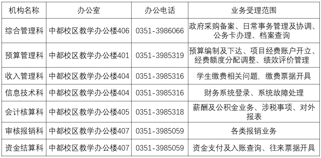 計劃財務(wù)部內(nèi)設(shè)機構(gòu)聯(lián)系方式及業(yè)務(wù)范圍