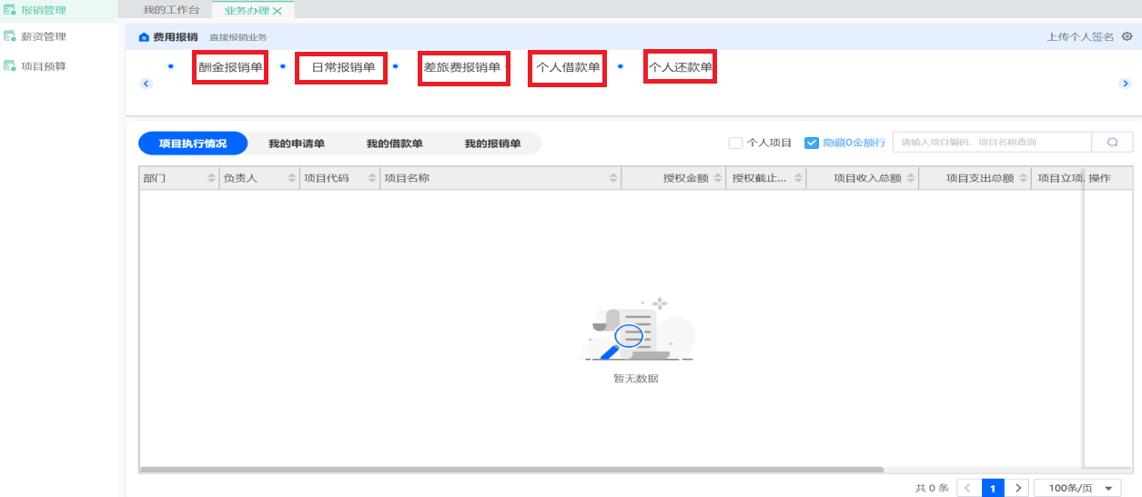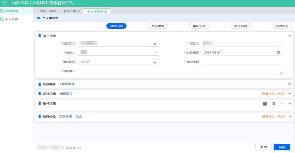 點擊【個人借款單】,進行借款單填寫。