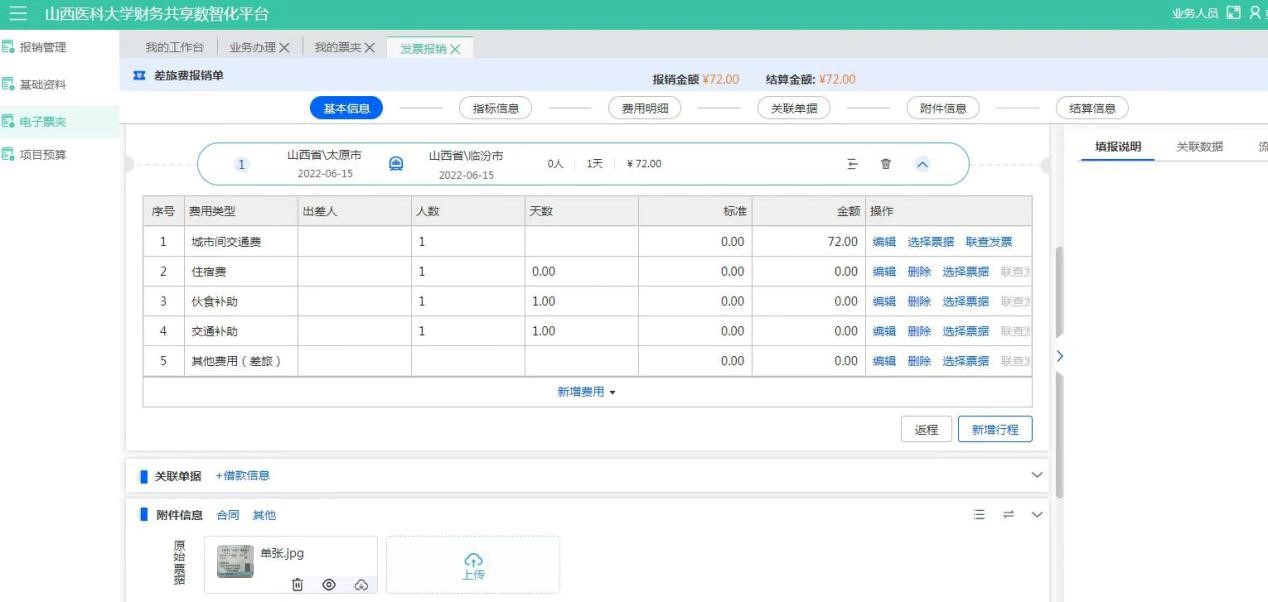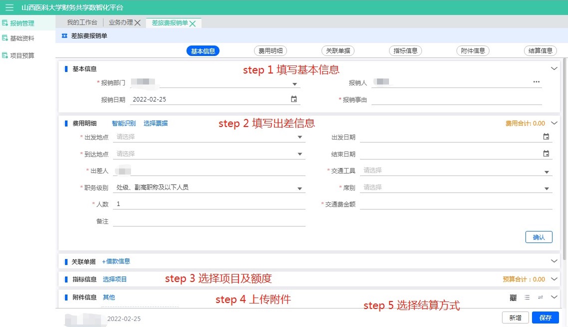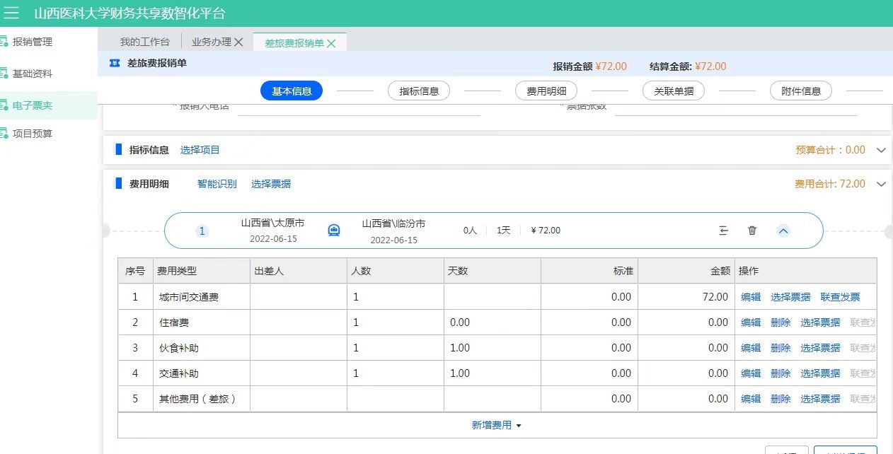 點擊【差旅費報銷】,進入報銷填寫: