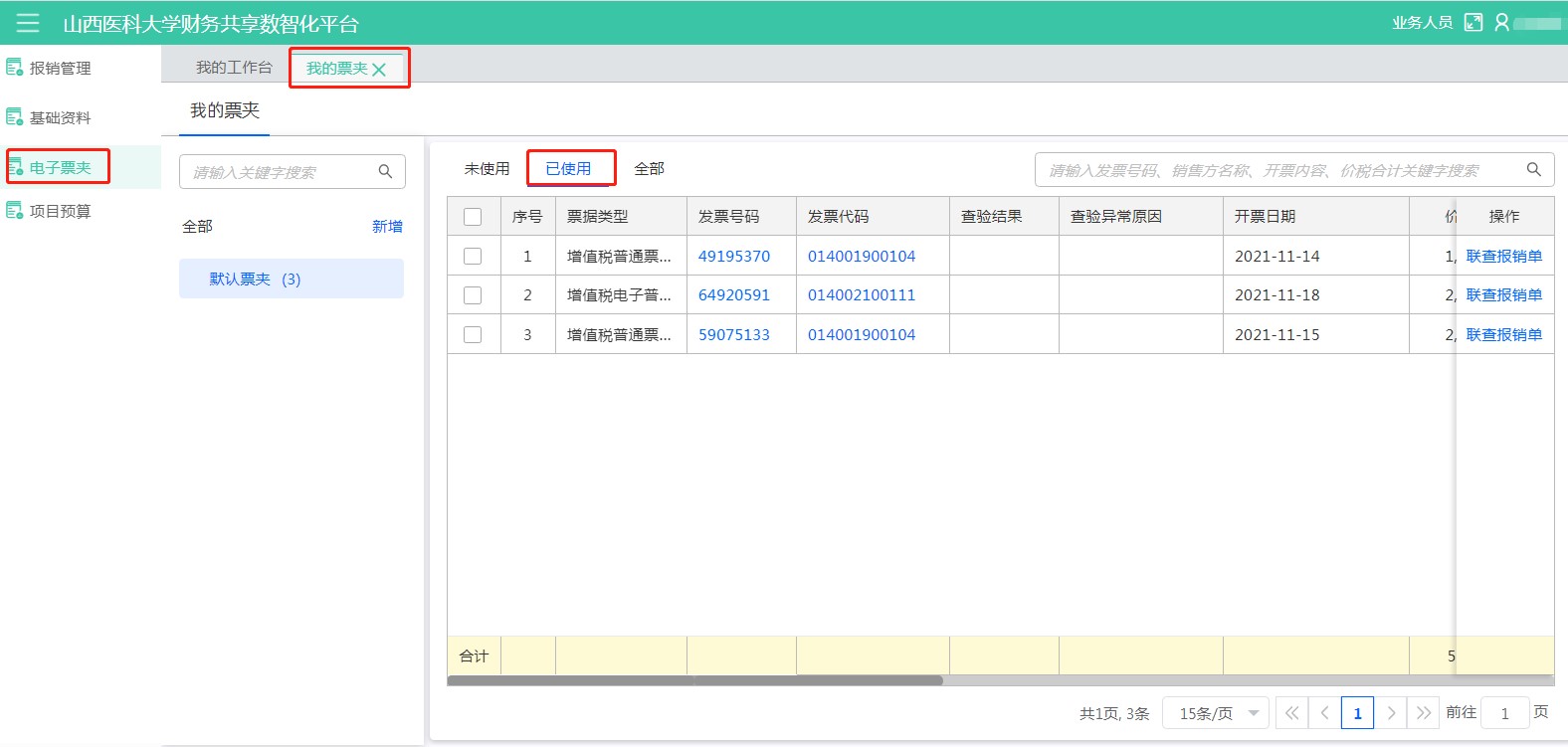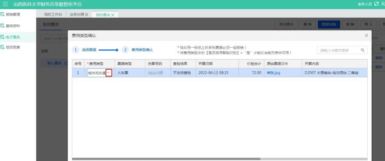 (2)、從電子票夾中進行報銷
