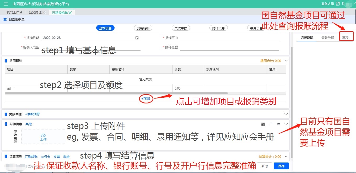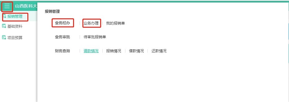 在中都校區(qū)和迎澤校區(qū)填制報銷單,按以下流程操作: