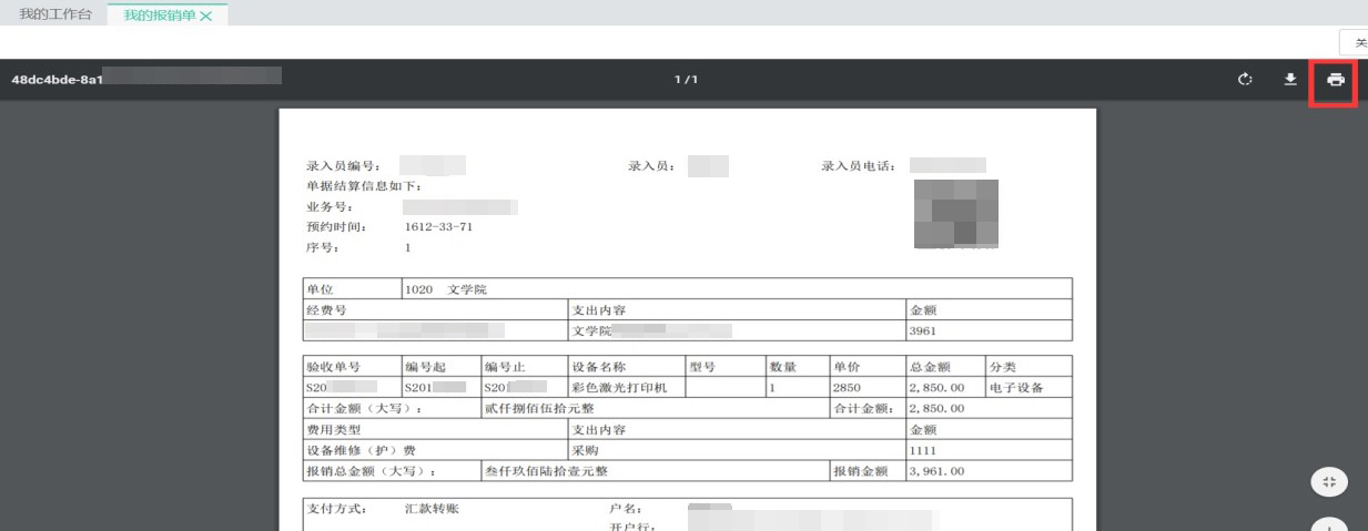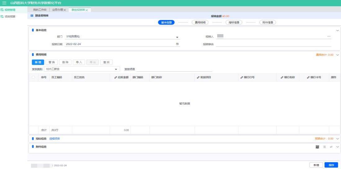2.酬金報銷中,姓名、身份證號、銀行賬號、開戶行名稱、開戶行行號、應發(fā)金額、聯(lián)系電話為必填項。