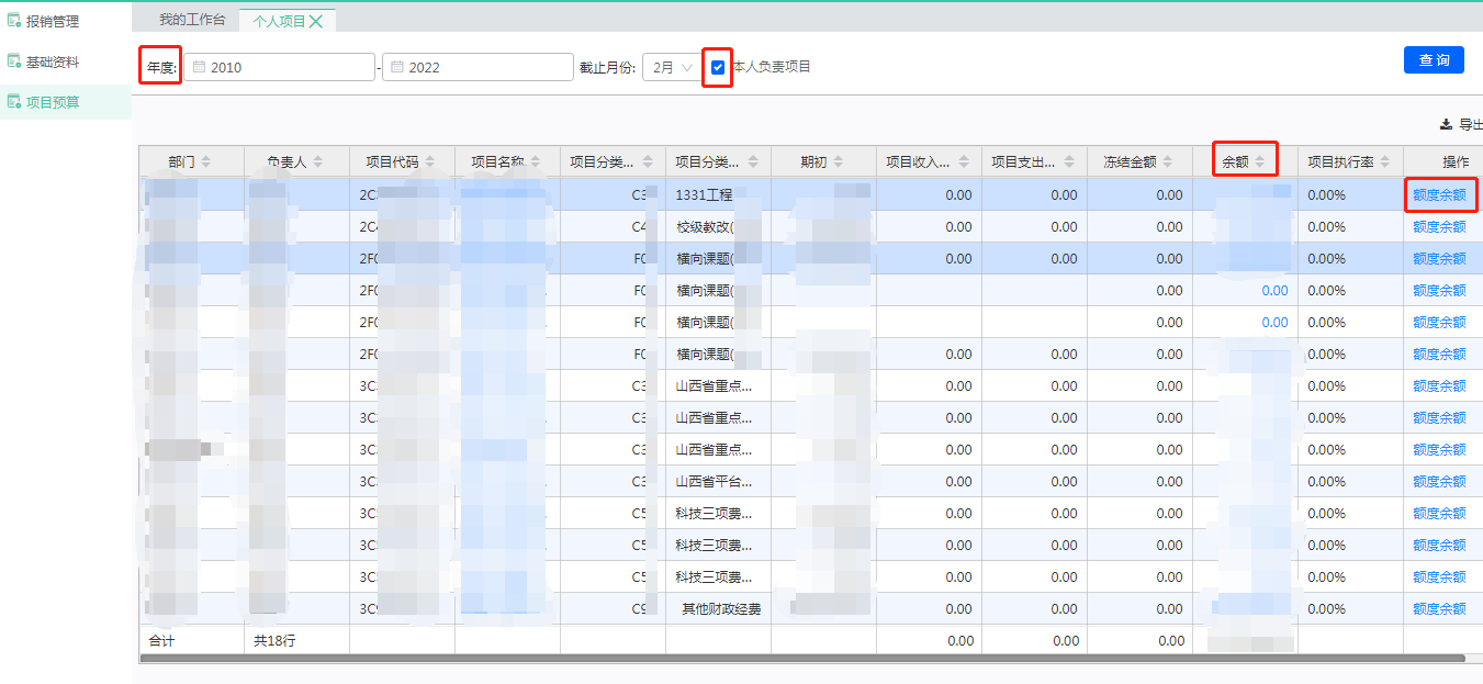 選擇項目開始年度,會出現(xiàn)本人負責項目及他人授權項目,點擊藍色字體,可進行相應查詢。勾選本人負責項目后,被授權項目不再顯示。