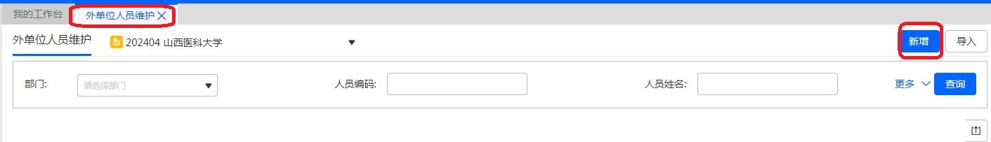 3.新增校外人員酬金發(fā)放,可通過【基礎資料】-【外單位人員維護】新增,如圖: