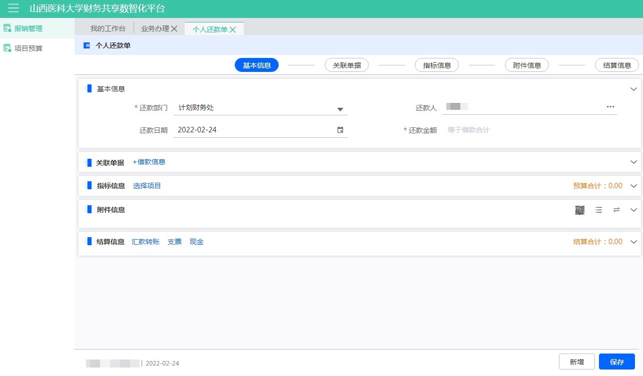 點擊【個人還款單】,進行還款業(yè)務填寫