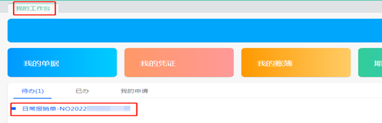 注:除國自然項目外,填報人提交報銷單后,需返回【我的工作臺】—【待辦】中點擊想要打印的報銷單,如圖: