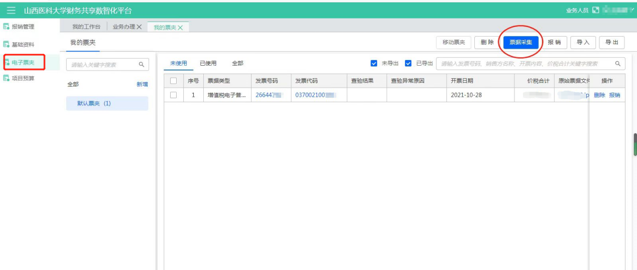 點擊電子票夾--【票據(jù)采集】。