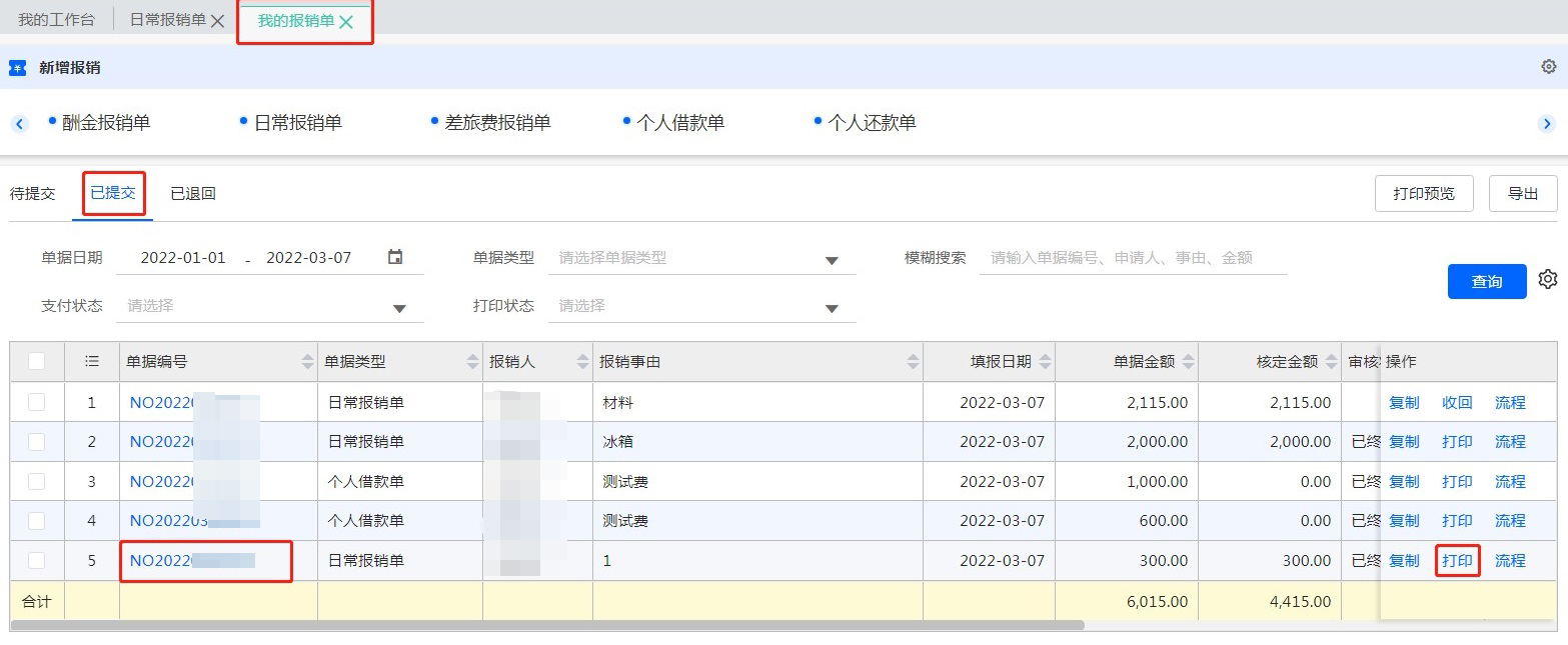 3.已提交單據(jù)打印
