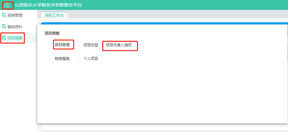 登錄后,在左側菜單列表中,點擊【項目預算】-【項目管理】-【項目負責人授權】。