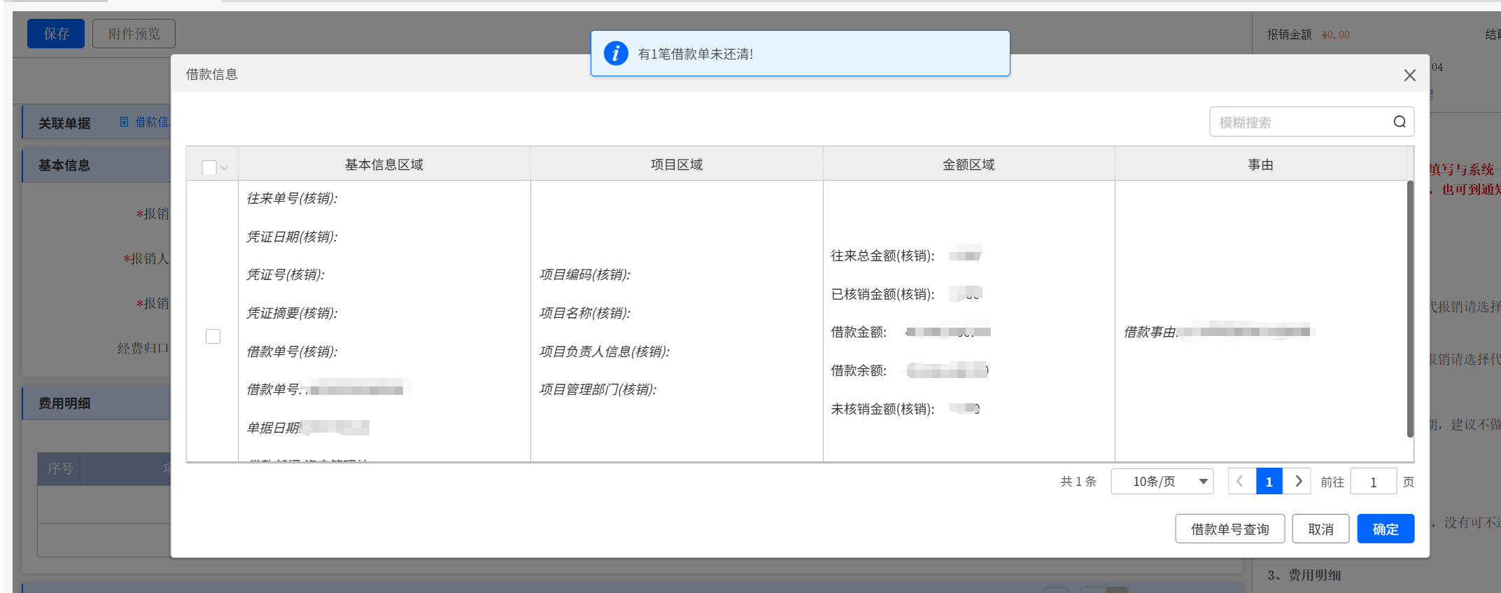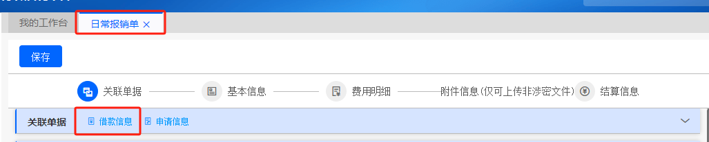 填寫日常報(bào)銷單,在點(diǎn)擊“關(guān)聯(lián)單據(jù)”→“借款信息”,選擇對應(yīng)借款單據(jù)并確認(rèn)。