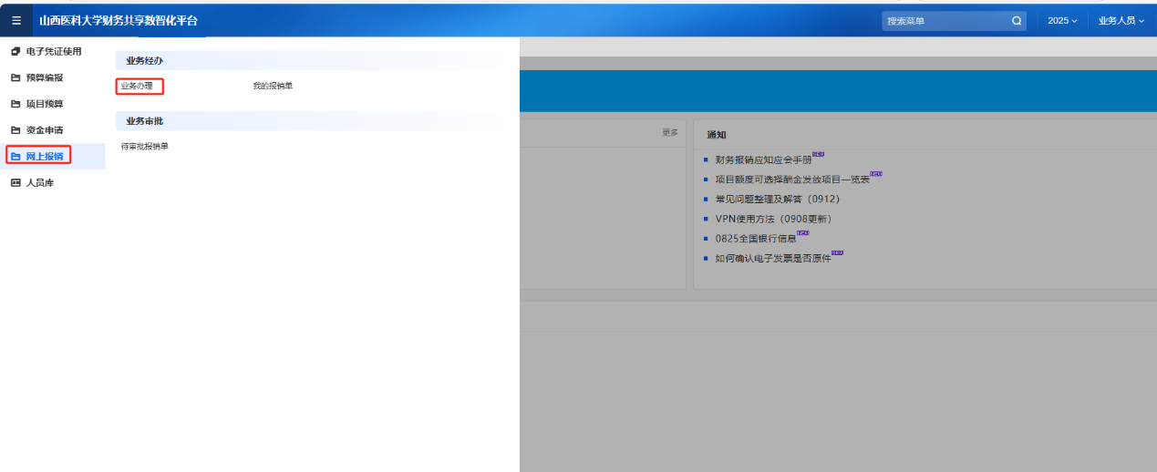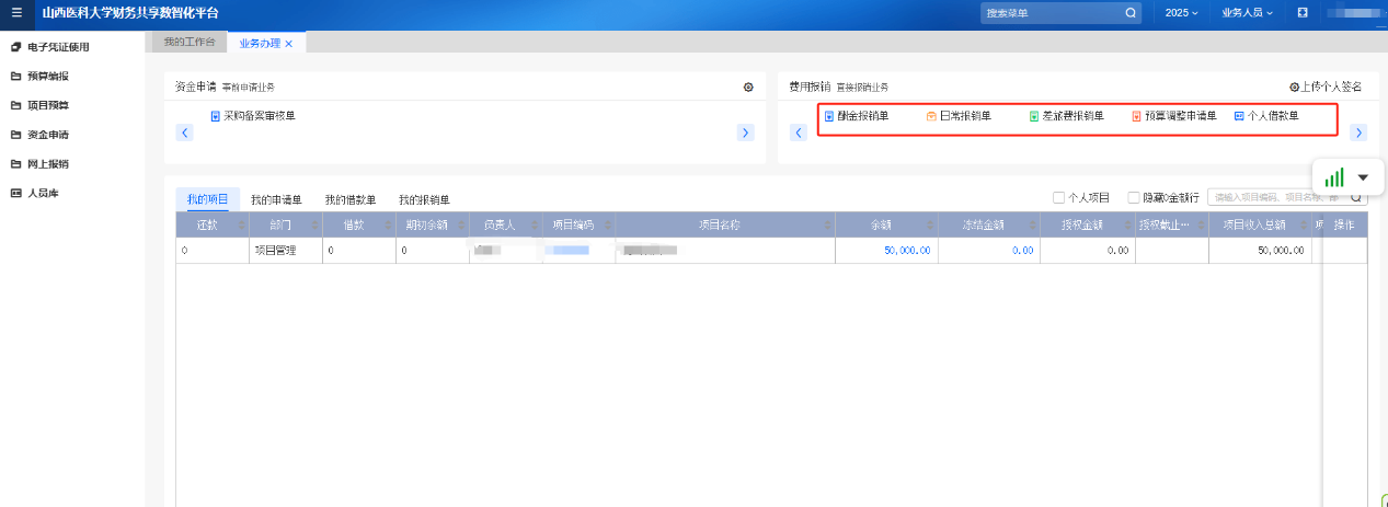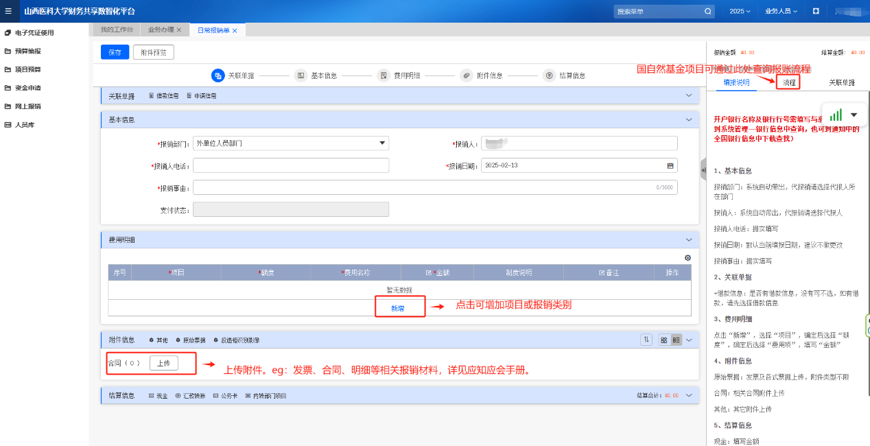 在中都校區(qū)和迎澤校區(qū)填制報(bào)銷單,按以下流程操作: