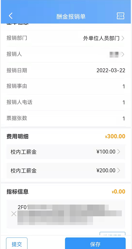 可以選擇要查看的報銷單,點擊可以進入填報界面,查看具體填寫內容。