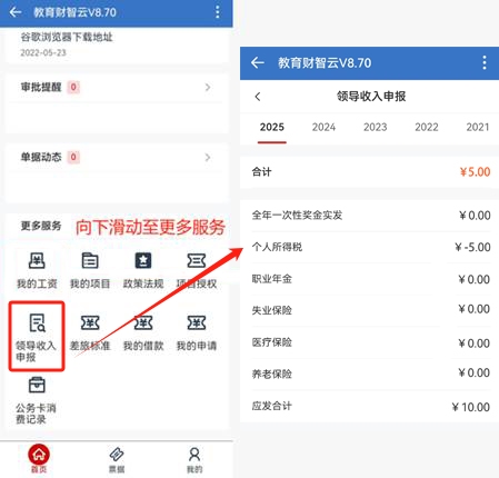 在主頁面下滑至最下方,點擊“領導收入申報”進入,選擇對應年度,根據收入情況進行申報。