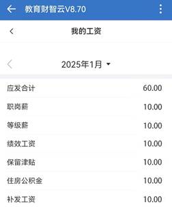 點擊具體月份可進一步查詢工資詳細信息。詳細工資信息頁面如下圖所示: